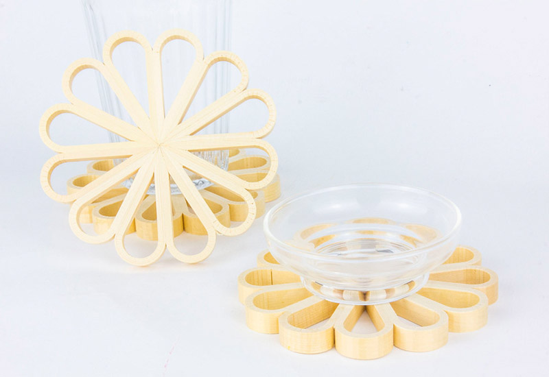 將花窗的工藝轉換,成為優雅的杯墊。一朵朵菊花放置在桌上。小巧可愛又實用~
