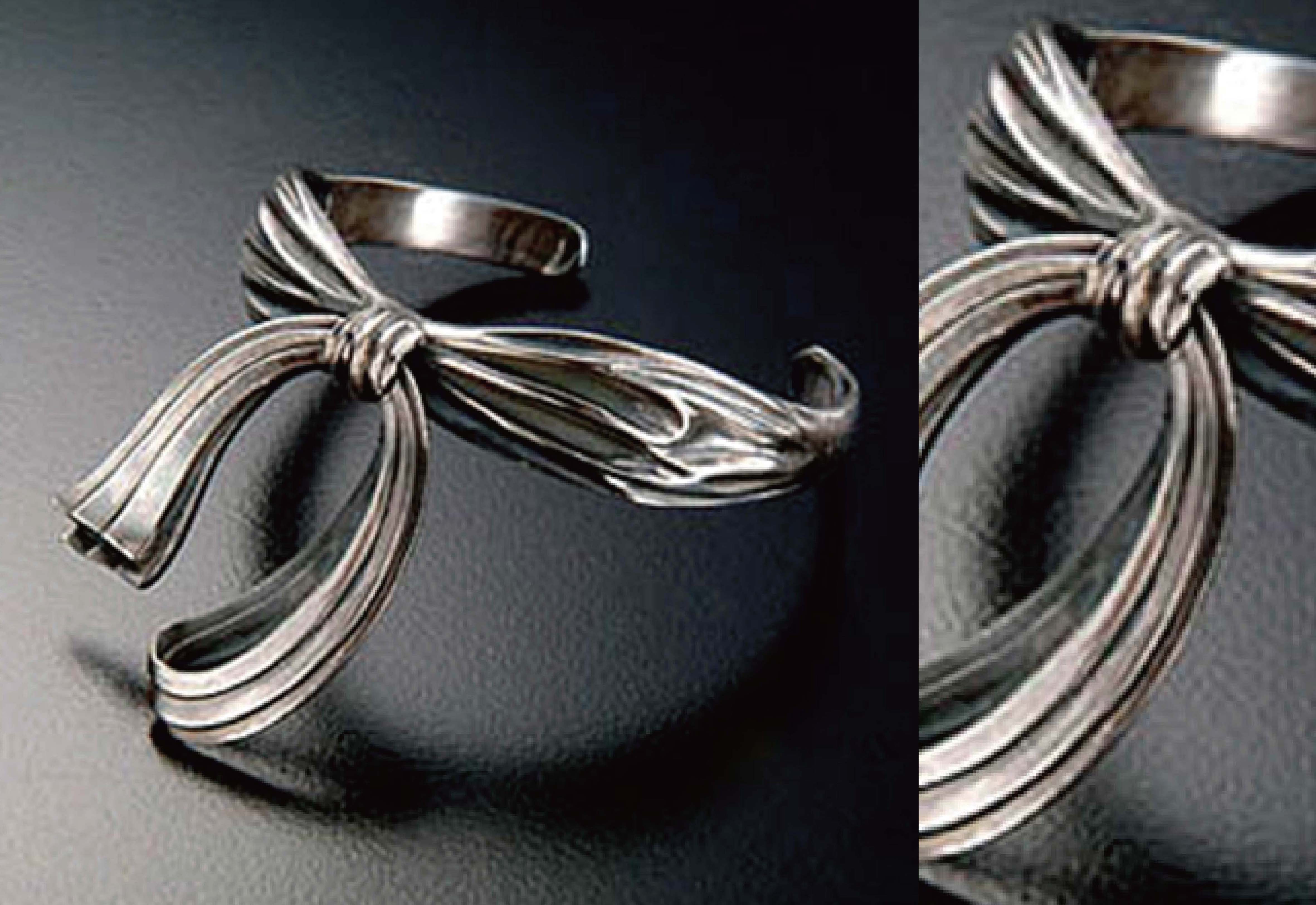 秦俑身上處處可見線條流暢且具動感的蝴蝶結圖案,像是領結、鎧甲、靴子等,對照於現代品味趨勢,設計出手環、戒指、別針等飾品型態,彷彿帶給使用者穿梭古今的超時空浪漫感受。