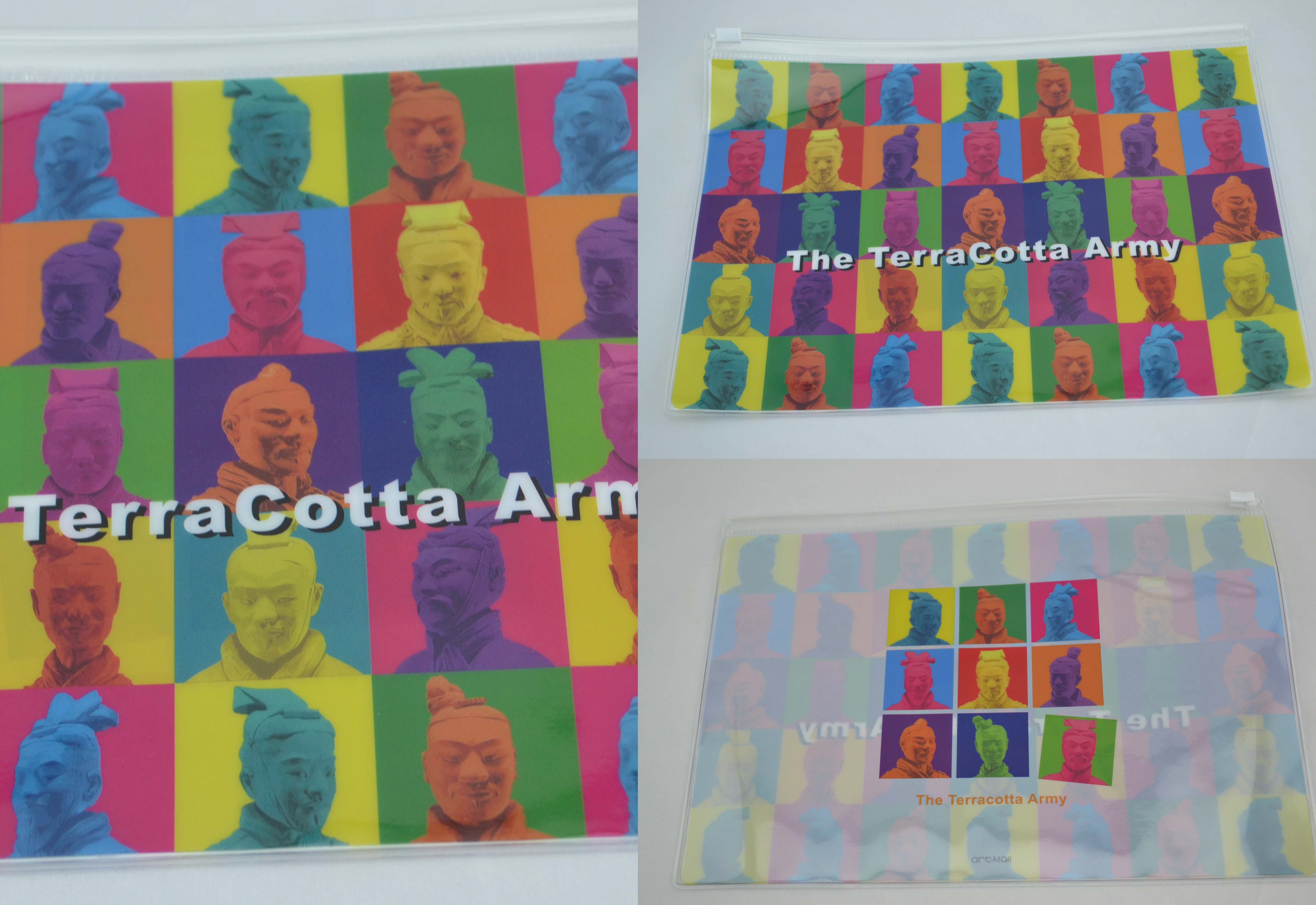 秦始皇陵墓兵馬俑並未在史籍上有所記載,故未被人知,也因此歷經二千餘年而能保存原貌。1974年3月29日陝西大旱,臨潼縣村民楊志發在挖井打水時意外發現兵馬俑碎片,當時村民稱這些陶塑為「瓦爺」。在人們初次見到兵俑時,兵俑衣著、武器的顏色還十分鮮艷,非常好看,歷經兩千年威武不減;但是在考古學家挖出土時,受空氣氧化影響,數分鐘內即漸漸剝落消失,只剩下一般大眾印象中的陶土色。1976年-1978年,考古隊增添了考古、保護、照相、修復等人員,各項發掘工作全面開展。1979年10月1日,秦始皇兵馬俑博物館開始向國內外參觀者展出。(wiki介紹)兵馬俑 普普風夾鏈袋 普普風格 普普藝術 普普風 普普 夾鏈袋 夾鏈 袋子 袋 文具用品 文具 收納袋 收納 兵馬俑創意商品 兵馬俑創意 兵馬俑商品 個展回顧 Terracotta Army Zipper bag Pop Art Stationery Storage bag Cosmetic bag Universal bag