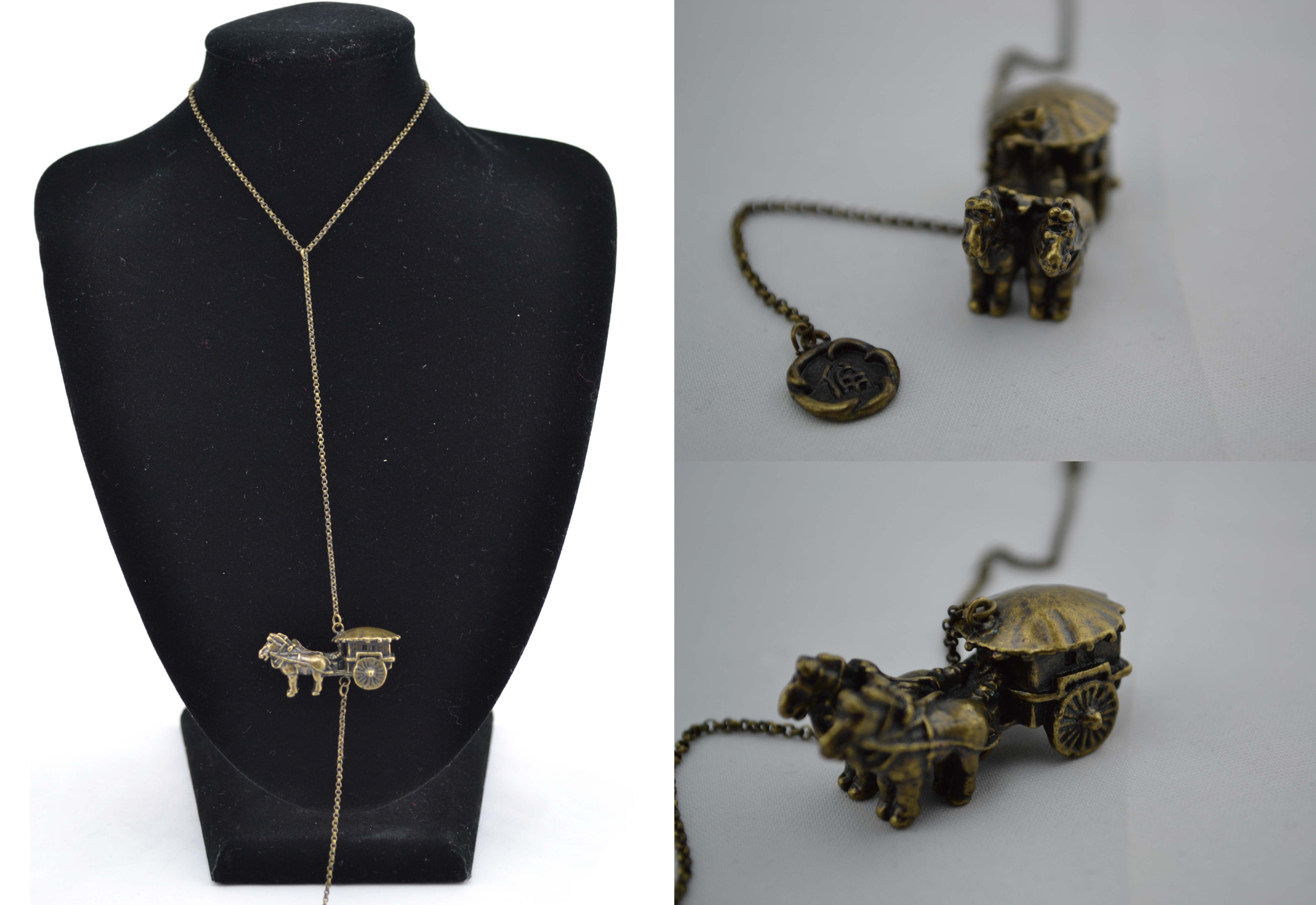 秦始皇陵墓兵馬俑並未在史籍上有所記載,故未被人知,也因此歷經二千餘年而能保存原貌。1974年3月29日陝西大旱,臨潼縣村民楊志發在挖井打水時意外發現兵馬俑碎片,當時村民稱這些陶塑為「瓦爺」。在人們初次見到兵俑時,兵俑衣著、武器的顏色還十分鮮艷,非常好看,歷經兩千年威武不減;但是在考古學家挖出土時,受空氣氧化影響,數分鐘內即漸漸剝落消失,只剩下一般大眾印象中的陶土色。1976年-1978年,考古隊增添了考古、保護、照相、修復等人員,各項發掘工作全面開展。1979年10月1日,秦始皇兵馬俑博物館開始向國內外參觀者展出。(wiki介紹)兵馬俑 安銅車馬項鍊項鍊-金色 安銅車馬 馬車 金色 金 項鍊 首飾 飾品 穿搭 頸鏈 女生飾品 鉛錫合金項鍊 兵馬俑創意商品 兵馬俑創意 兵馬俑商品 個展回顧 Terracotta Army Series Necklace Horse drawn Chariot Gold Accessories