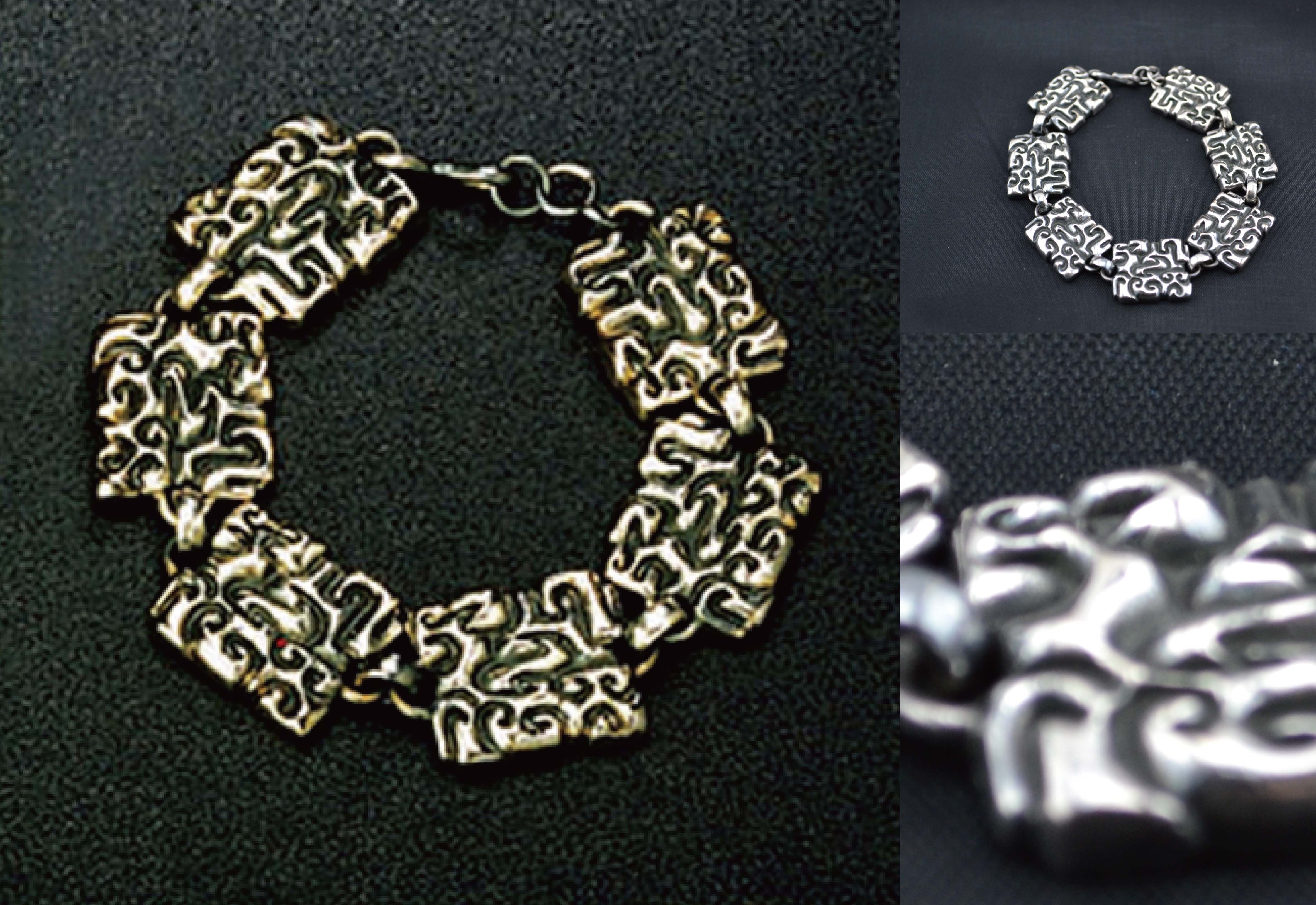 秦始皇陵墓兵馬俑並未在史籍上有所記載,故未被人知,也因此歷經二千餘年而能保存原貌。1974年3月29日陝西大旱,臨潼縣村民楊志發在挖井打水時意外發現兵馬俑碎片,當時村民稱這些陶塑為「瓦爺」。在人們初次見到兵俑時,兵俑衣著、武器的顏色還十分鮮艷,非常好看,歷經兩千年威武不減;但是在考古學家挖出土時,受空氣氧化影響,數分鐘內即漸漸剝落消失,只剩下一般大眾印象中的陶土色。1976年-1978年,考古隊增添了考古、保護、照相、修復等人員,各項發掘工作全面開展。1979年10月1日,秦始皇兵馬俑博物館開始向國內外參觀者展出。(wiki介紹)兵馬俑 玉璜手鍊 玉璜 手鍊 手環 首飾 飾品 穿搭 銀質手鍊 銀手鍊 銀質手環 銀手環 銀質 銀 兵馬俑創意商品 兵馬俑創意 兵馬俑商品 個展回顧 Terracotta Army Series Bracelet with Jade Pendant Motif Accessories