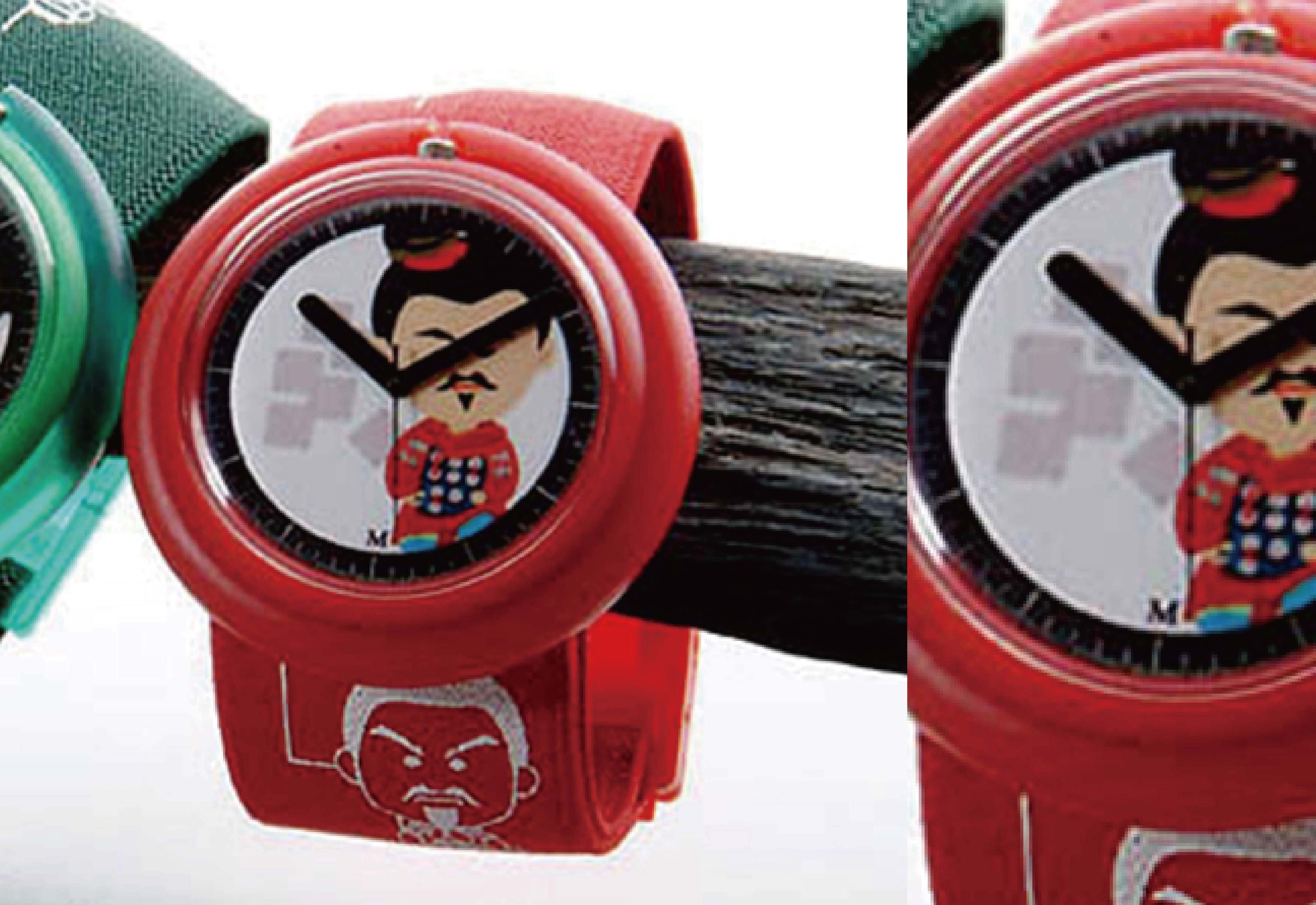 卡通版兵馬俑結合運動型手錶,造型復古可愛,不失歷史原味。尼龍質錶帶穿戴方便,沾水也不怕。錶面為超可愛的Q版跪射俑。