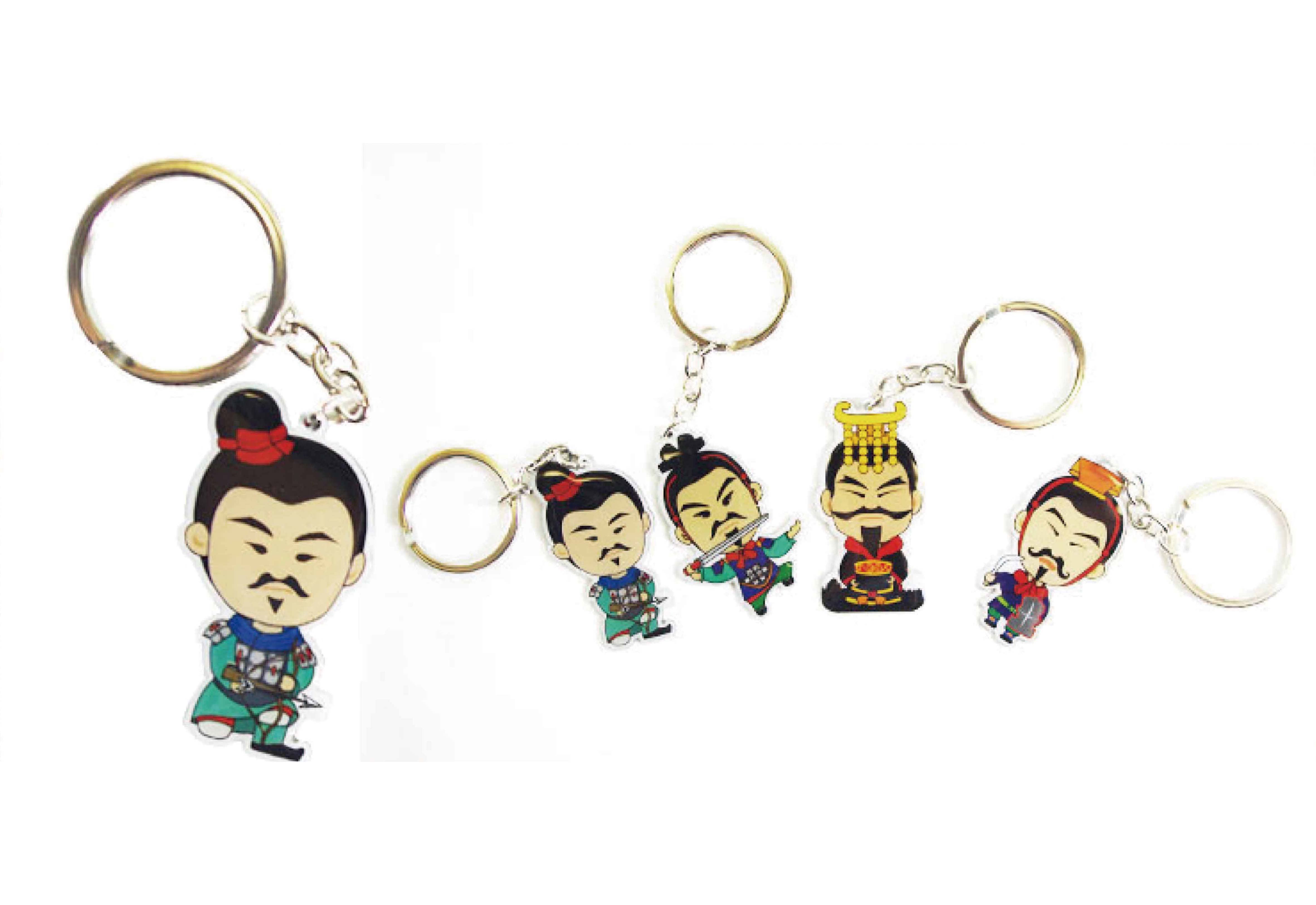 秦始皇陵墓兵馬俑並未在史籍上有所記載,故未被人知,也因此歷經二千餘年而能保存原貌。1974年3月29日陝西大旱,臨潼縣村民楊志發在挖井打水時意外發現兵馬俑碎片,當時村民稱這些陶塑為「瓦爺」。在人們初次見到兵俑時,兵俑衣著、武器的顏色還十分鮮艷,非常好看,歷經兩千年威武不減;但是在考古學家挖出土時,受空氣氧化影響,數分鐘內即漸漸剝落消失,只剩下一般大眾印象中的陶土色。1976年-1978年,考古隊增添了考古、保護、照相、修復等人員,各項發掘工作全面開展。1979年10月1日,秦始皇兵馬俑博物館開始向國內外參觀者展出。(wiki介紹)兵馬俑 跪射俑公仔鑰匙圈 跪射俑 公仔 鑰匙圈 鑰匙 鎖圈 吊飾 掛飾 文具 兵馬俑創意商品 兵馬俑創意 兵馬俑商品 個展回顧 Terracotta Army Doll Key ring Kneeling archer Accessories