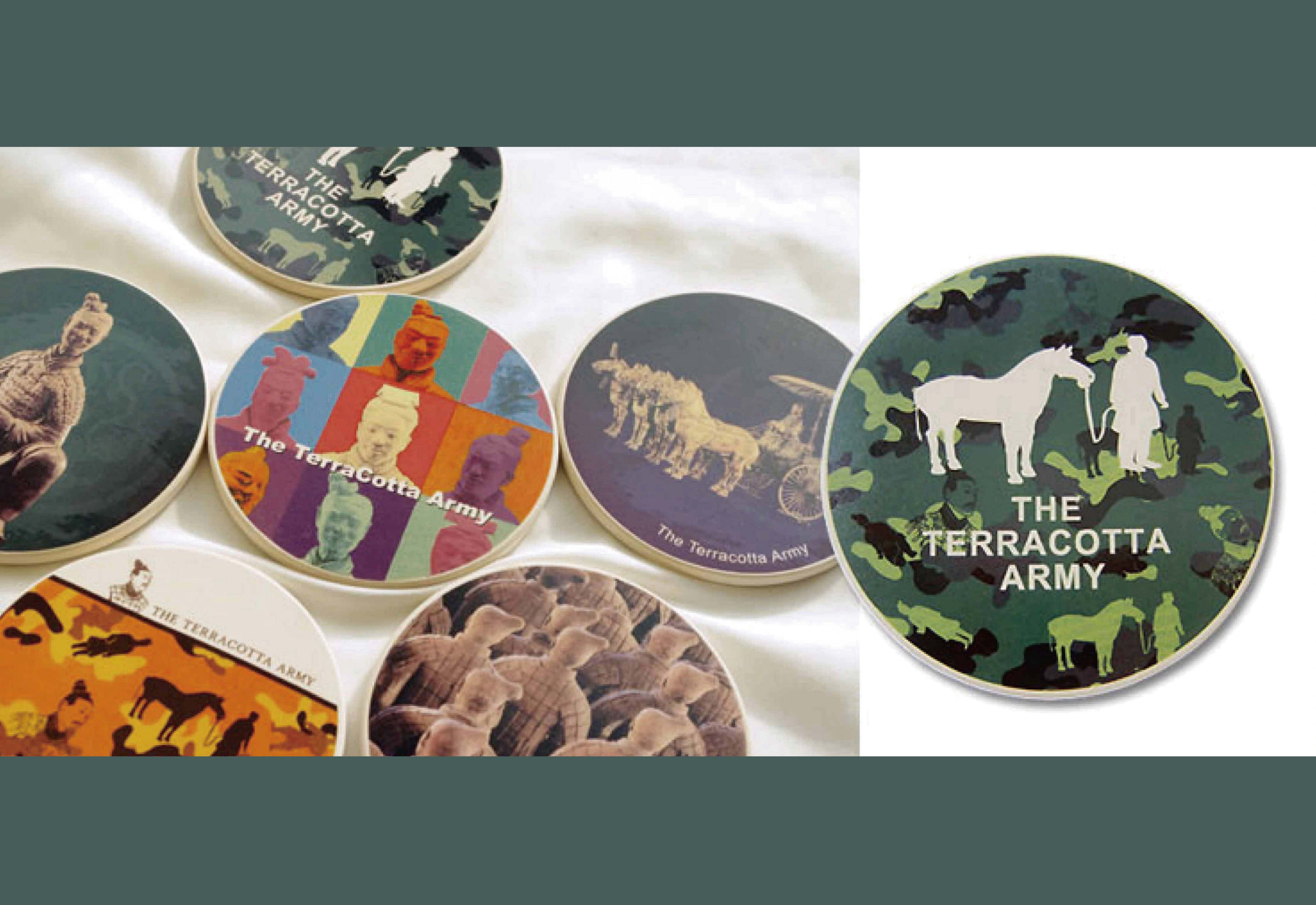 秦始皇陵墓兵馬俑並未在史籍上有所記載,故未被人知,也因此歷經二千餘年而能保存原貌。1974年3月29日陝西大旱,臨潼縣村民楊志發在挖井打水時意外發現兵馬俑碎片,當時村民稱這些陶塑為「瓦爺」。在人們初次見到兵俑時,兵俑衣著、武器的顏色還十分鮮艷,非常好看,歷經兩千年威武不減;但是在考古學家挖出土時,受空氣氧化影響,數分鐘內即漸漸剝落消失,只剩下一般大眾印象中的陶土色。1976年-1978年,考古隊增添了考古、保護、照相、修復等人員,各項發掘工作全面開展。1979年10月1日,秦始皇兵馬俑博物館開始向國內外參觀者展出。(wiki介紹)兵馬俑 迷彩綠吸水杯墊 迷彩綠 迷彩色 迷彩 綠色 綠 吸水杯墊 杯墊 墊子 墊 桌飾 餐具 喝水 吸水 陶瓷 陶製 陶瓷墊 陶墊 兵馬俑創意商品 兵馬俑創意 兵馬俑商品 個展回顧 Terracotta Army Absorbent coaster Camouflage green