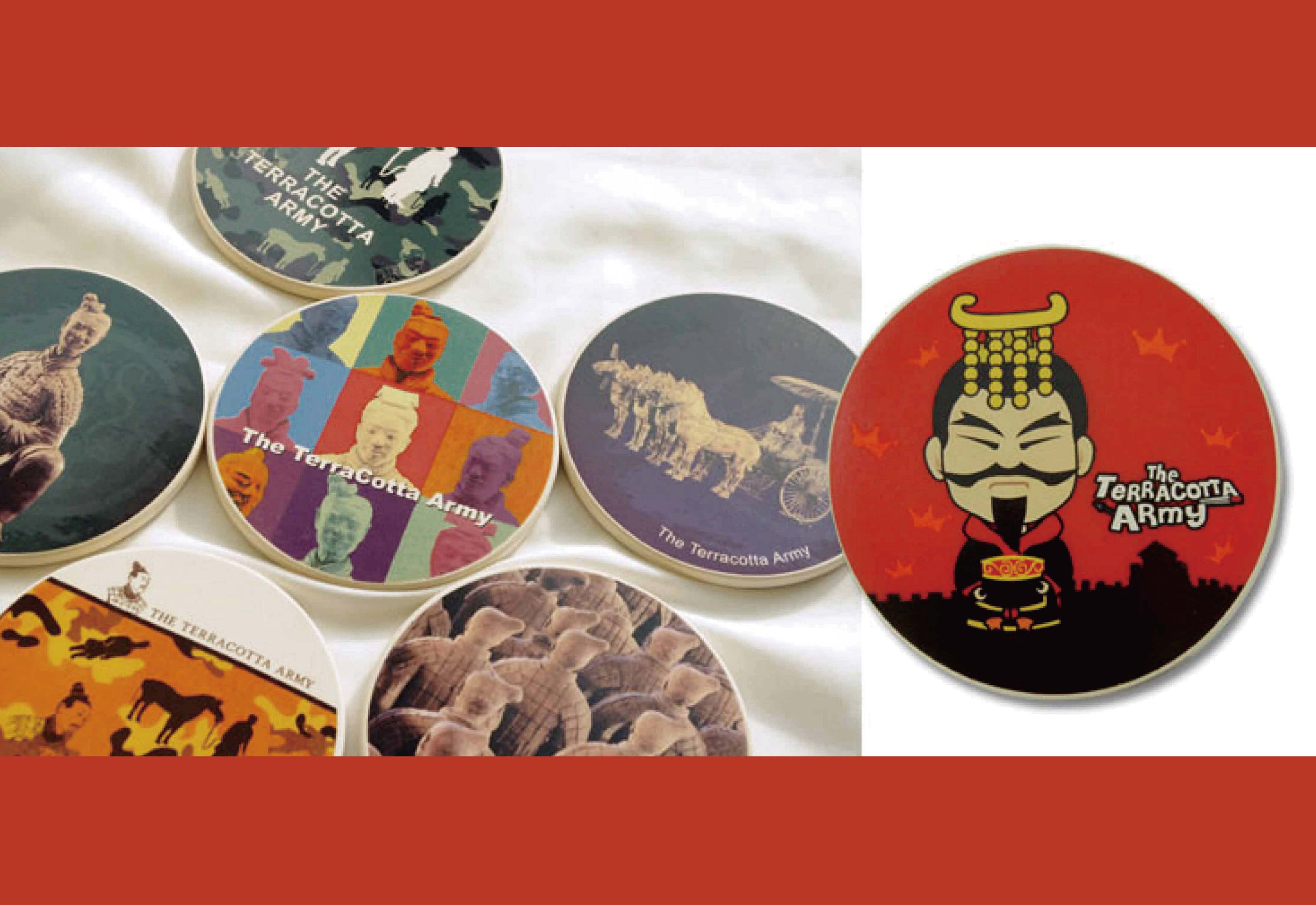 秦始皇陵墓兵馬俑並未在史籍上有所記載,故未被人知,也因此歷經二千餘年而能保存原貌。1974年3月29日陝西大旱,臨潼縣村民楊志發在挖井打水時意外發現兵馬俑碎片,當時村民稱這些陶塑為「瓦爺」。在人們初次見到兵俑時,兵俑衣著、武器的顏色還十分鮮艷,非常好看,歷經兩千年威武不減;但是在考古學家挖出土時,受空氣氧化影響,數分鐘內即漸漸剝落消失,只剩下一般大眾印象中的陶土色。1976年-1978年,考古隊增添了考古、保護、照相、修復等人員,各項發掘工作全面開展。1979年10月1日,秦始皇兵馬俑博物館開始向國內外參觀者展出。(wiki介紹)兵馬俑 Q版秦始皇吸水杯墊 秦始皇 Q版兵馬俑 q版兵馬俑 Q版秦始皇 q版秦始皇 Q版 q版 吸水杯墊 杯墊 墊子 墊 桌飾 餐具 喝水 吸水 陶瓷 陶製 陶瓷墊 陶墊 兵馬俑創意商品 兵馬俑創意 兵馬俑商品 個展回顧 Terracotta Army Absorbent coaster Emperor Qin Shihuang Cartoon Version
