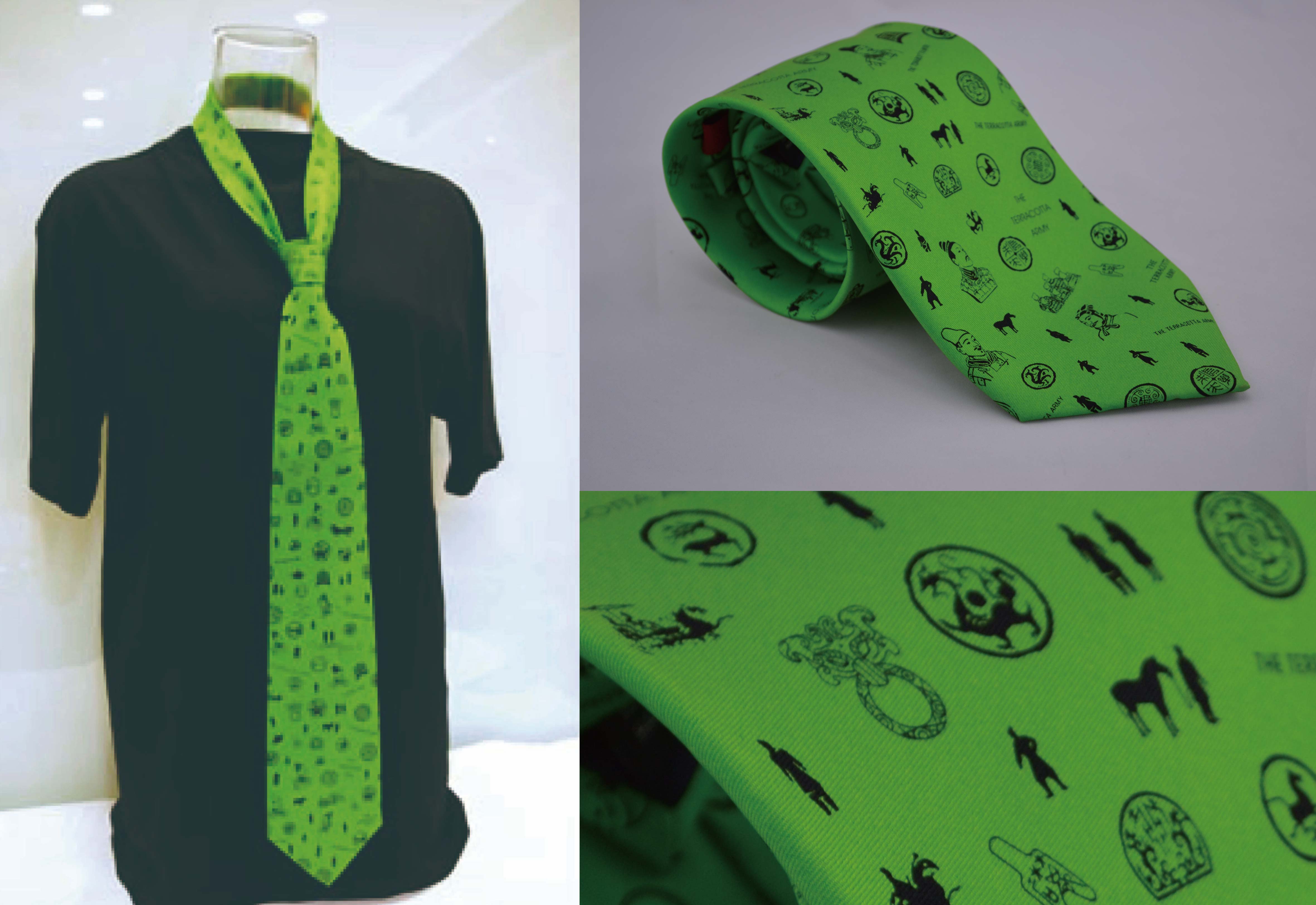 秦始皇陵墓兵馬俑並未在史籍上有所記載,故未被人知,也因此歷經二千餘年而能保存原貌。1974年3月29日陝西大旱,臨潼縣村民楊志發在挖井打水時意外發現兵馬俑碎片,當時村民稱這些陶塑為「瓦爺」。在人們初次見到兵俑時,兵俑衣著、武器的顏色還十分鮮艷,非常好看,歷經兩千年威武不減;但是在考古學家挖出土時,受空氣氧化影響,數分鐘內即漸漸剝落消失,只剩下一般大眾印象中的陶土色。1976年-1978年,考古隊增添了考古、保護、照相、修復等人員,各項發掘工作全面開展。1979年10月1日,秦始皇兵馬俑博物館開始向國內外參觀者展出。(wiki介紹)兵馬俑 綠色領帶 綠色 綠 領帶 上班服裝 聚會服裝 正式場合服裝 正裝 西裝 襯衫 服飾 衣服配件 服裝穿搭 服裝 穿搭 時尚穿搭 時尚 布織 布 布料 縫紉 兵馬俑創意商品 兵馬俑創意 兵馬俑商品 個展回顧 Terracotta Army Tie Green Clothing accesories Silk products