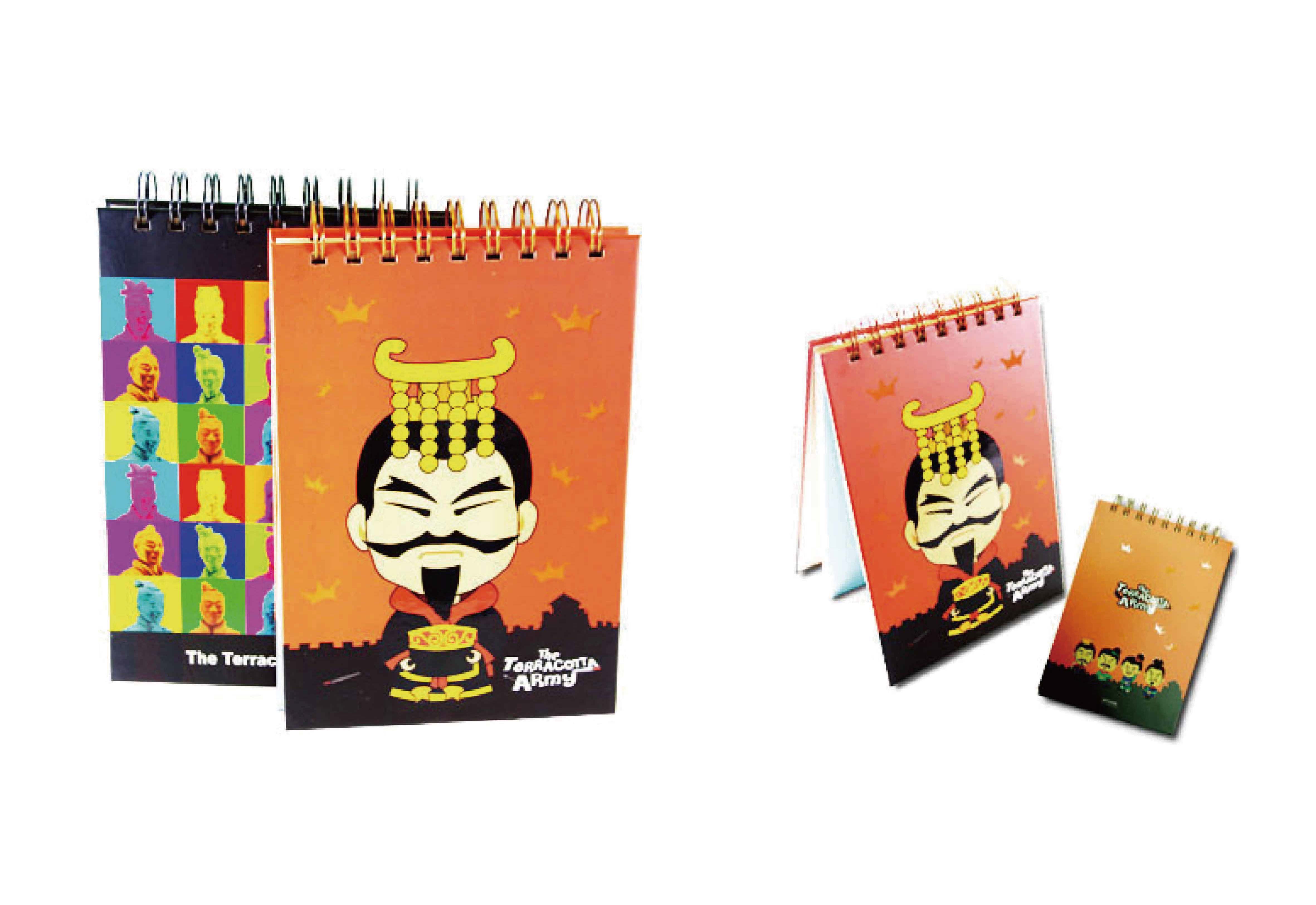 秦始皇陵墓兵馬俑並未在史籍上有所記載,故未被人知,也因此歷經二千餘年而能保存原貌。1974年3月29日陝西大旱,臨潼縣村民楊志發在挖井打水時意外發現兵馬俑碎片,當時村民稱這些陶塑為「瓦爺」。在人們初次見到兵俑時,兵俑衣著、武器的顏色還十分鮮艷,非常好看,歷經兩千年威武不減;但是在考古學家挖出土時,受空氣氧化影響,數分鐘內即漸漸剝落消失,只剩下一般大眾印象中的陶土色。1976年-1978年,考古隊增添了考古、保護、照相、修復等人員,各項發掘工作全面開展。1979年10月1日,秦始皇兵馬俑博物館開始向國內外參觀者展出。(wiki介紹)兵馬俑 線圈筆記本 秦始皇 Q版兵馬俑 q版兵馬俑 Q版秦始皇 q版秦始皇 Q版 q版 手札 手帳 筆記本 日誌 日記 記事 文具用品 文具 兵馬俑創意商品 兵馬俑創意 兵馬俑商品 個展回顧 Terracotta Army Notebook Emperor Qin Shihuang Cartoon Version stationery