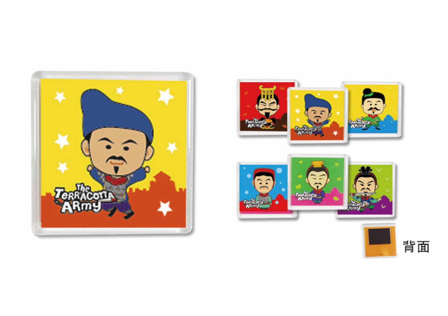 秦始皇陵墓兵馬俑並未在史籍上有所記載,故未被人知,也因此歷經二千餘年而能保存原貌。1974年3月29日陝西大旱,臨潼縣村民楊志發在挖井打水時意外發現兵馬俑碎片,當時村民稱這些陶塑為「瓦爺」。在人們初次見到兵俑時,兵俑衣著、武器的顏色還十分鮮艷,非常好看,歷經兩千年威武不減;但是在考古學家挖出土時,受空氣氧化影響,數分鐘內即漸漸剝落消失,只剩下一般大眾印象中的陶土色。1976年-1978年,考古隊增添了考古、保護、照相、修復等人員,各項發掘工作全面開展。1979年10月1日,秦始皇兵馬俑博物館開始向國內外參觀者展出。(wiki介紹)兵馬俑 鎧甲武士俑壓克力吸鐵 鎧甲武士俑 鎧甲武士 武士俑 武士 壓克力吸鐵 吸鐵 磁鐵 裝飾 佈置 文具用品 文具 紀念品 紀念 兵馬俑創意商品 兵馬俑創意 兵馬俑商品 個展回顧 Terracotta Army Acrylic Magnet Armor warrior