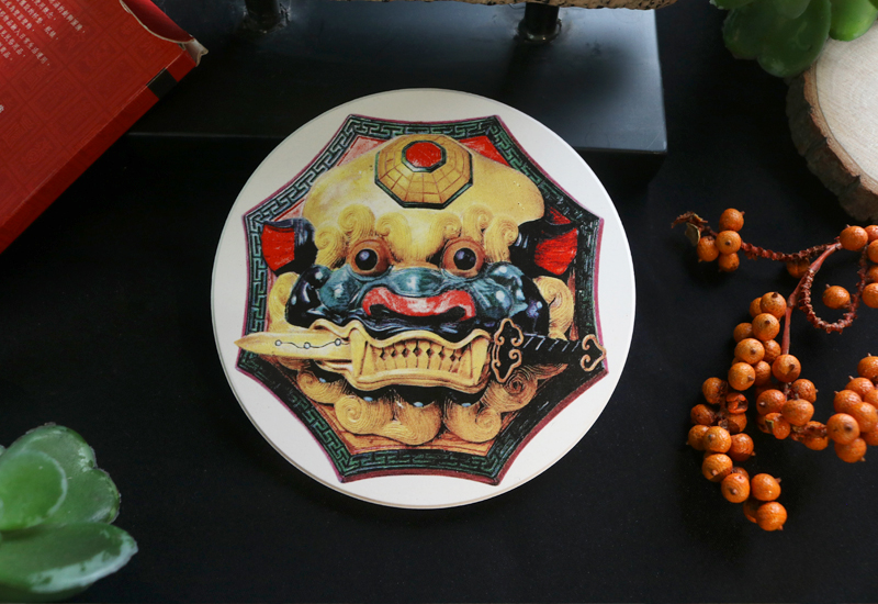 東方魅力-吉祥劍獅 杯墊(2入) 吉祥劍獅 吉祥 劍獅 獅子 吸水杯墊 杯墊 墊子 墊 桌飾 餐具 喝水 吸水 陶瓷 陶製 陶瓷墊 陶墊 Coaster