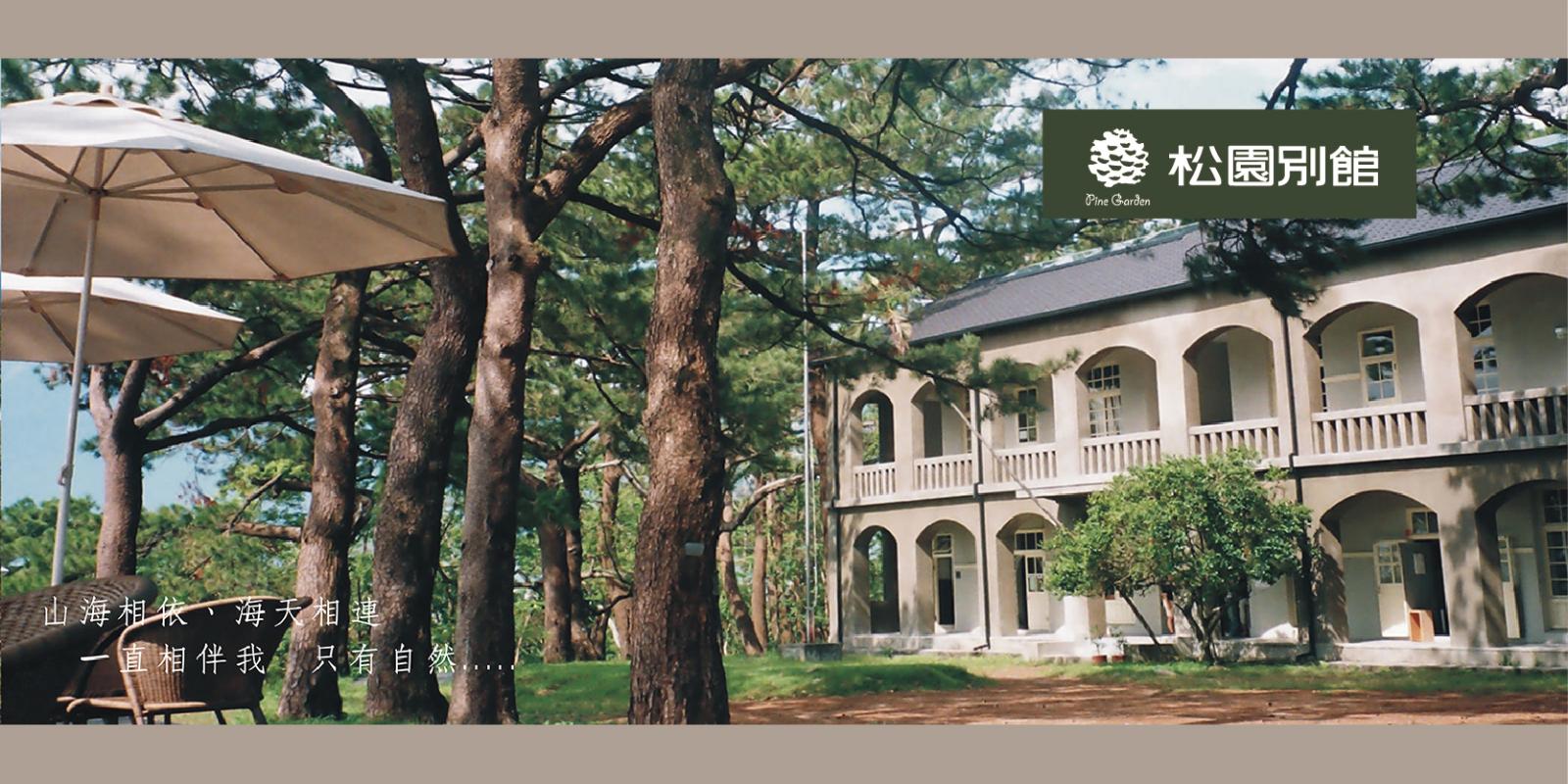 松園大片的松林,百年來像綠色大傘般撐起,與蔚藍的海岸、寧靜的天空形成浪 漫風情。而除了松樹之外,松園尚有原生植物蔓生,像血桐、蕨類、芒草、榕屬植物等; 其中以榕屬植物的纏勒現象最為特殊,各種大小葉雀榕穿過水泥牆,伸入建築物內繼續蔓延; 後院的水生植物池更是生趣盎然。自然生態與歷史空間交織融合成松園別館的特殊面貌,正是 這裡獨特的美學所在。