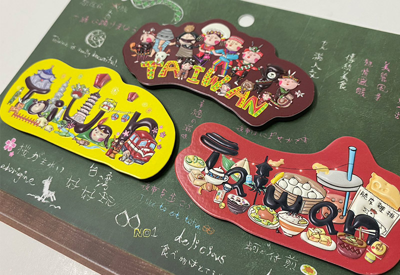 紙卡也精心設計為黑板樣式,就像是可以將你的台灣旅遊回憶全部寫在黑板上! 半立體的磁鐵設計,讓磁鐵更顯質感。