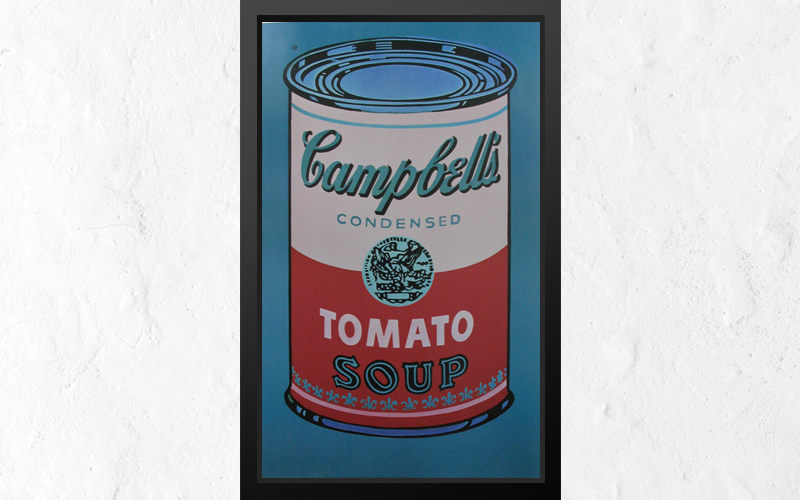 安迪·沃荷認為藝術與金錢掛勾,因此應該要努力把藝術商業化。他的著名作品中,有一幅不斷複製家傳戶曉的金寶湯圖案,就表現了資本主義生產方式的新一階段。他經常使用絹印版畫技法來重現圖像。他的作品中最常出現的是名人以及人們熟悉的事物,比如瑪麗蓮·夢露和埃爾維斯·普雷斯利。重複亦是其作品的一大特色。(來源:維基)