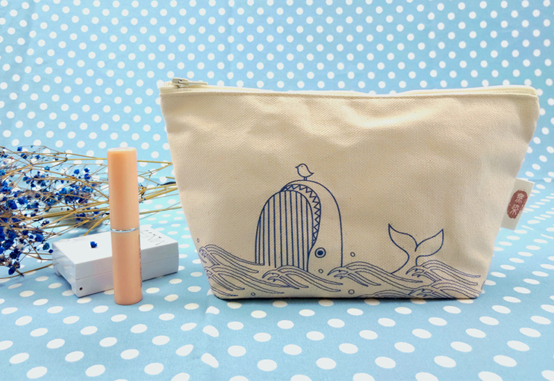 無染 手繪風-嬉戲藍鯨萬用包 微笑台灣MIT認證 收納袋 包包衣服配件居家收納 鯨魚收納包 化妝包 雜貨包 bag 台灣製 送禮 萬用袋