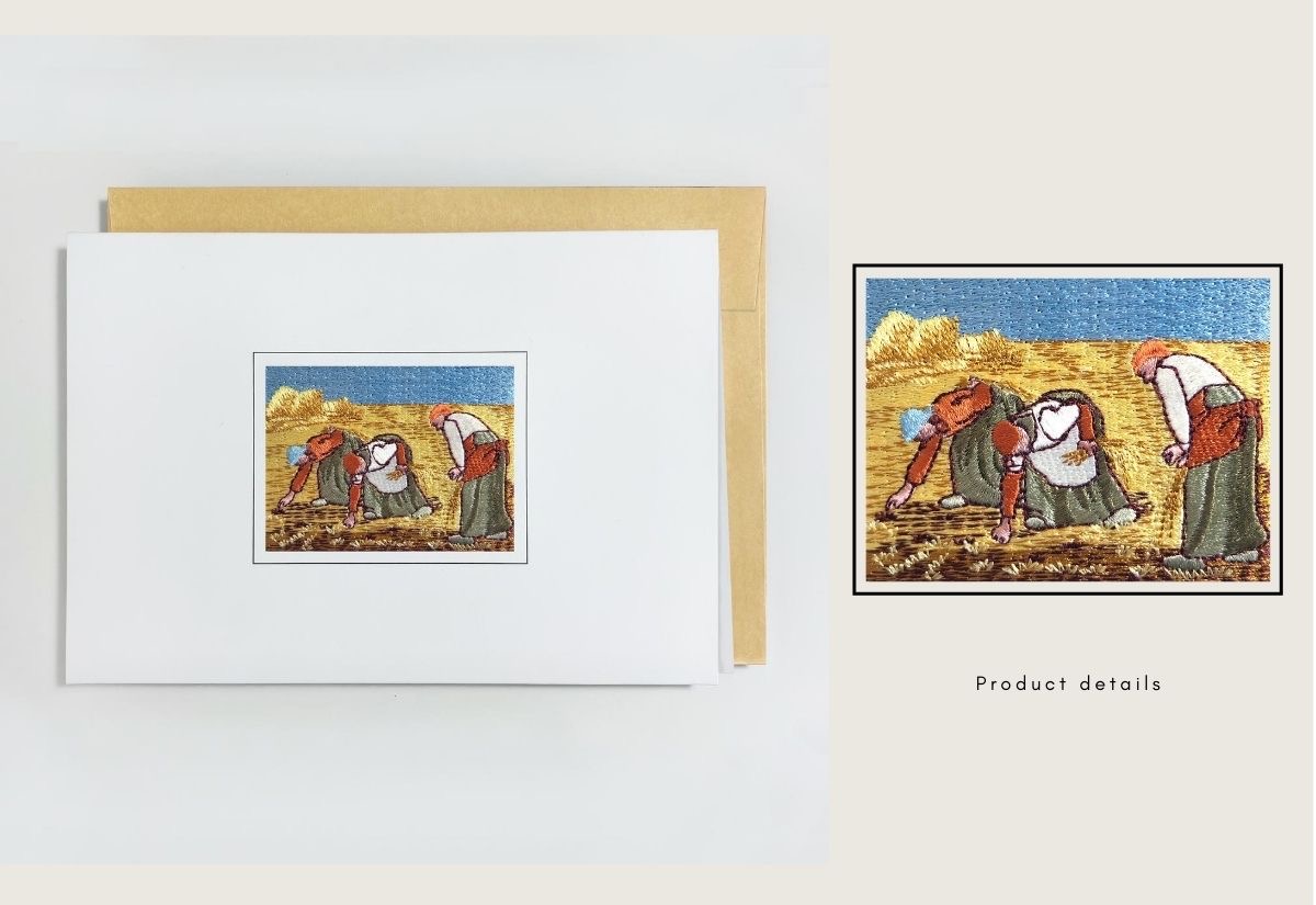 詩品 萬用卡-米勒『 拾穗 』剌繡畫祈願賀卡 生日卡祝福卡感謝卡 card