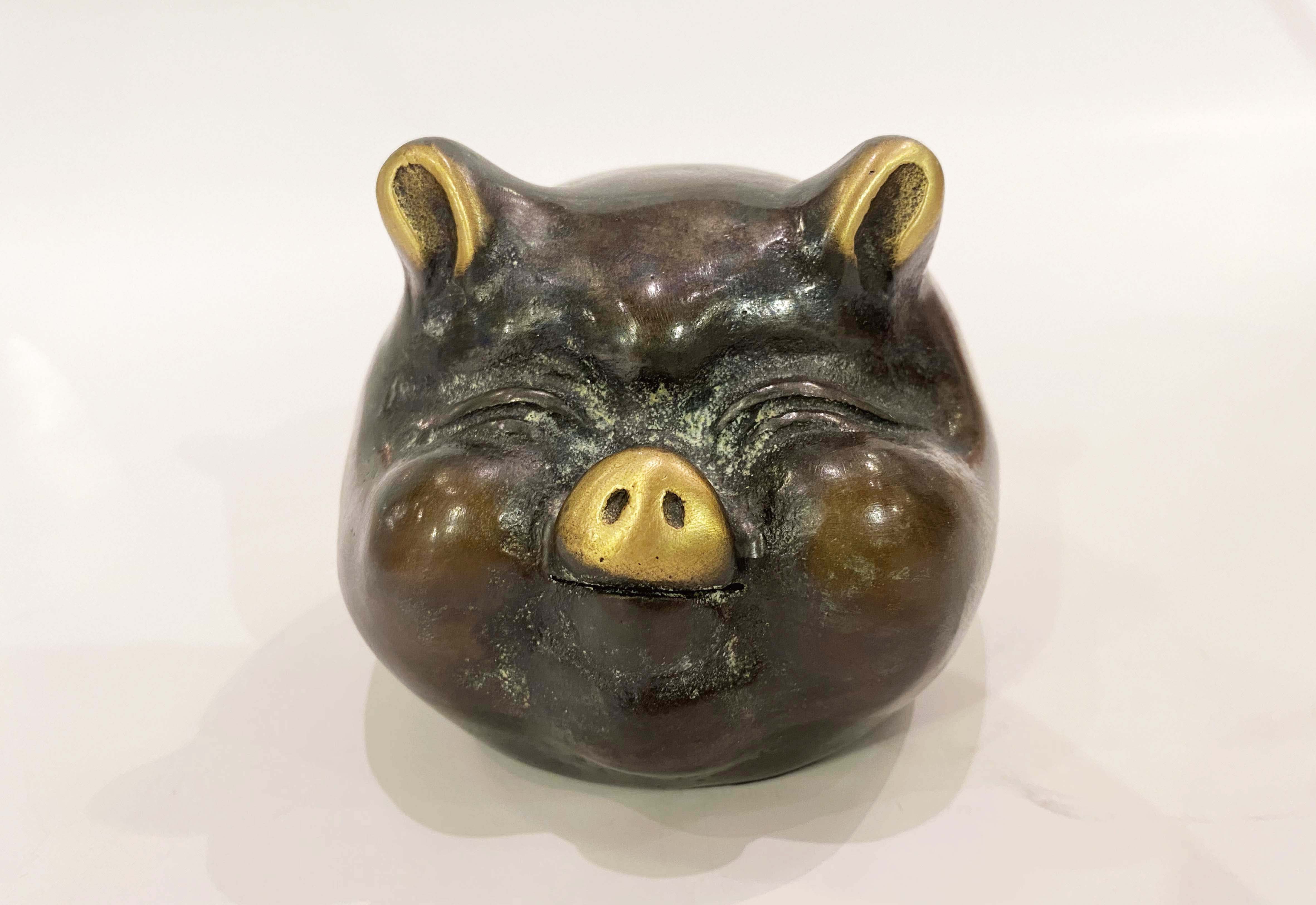 禾櫸 中圓豬青銅雕塑 青銅工藝品 動物青銅雕塑 雕像 十二生肖 布置擺設 恭賀祝賀 祝福 招財進寶 開運 吉祥 福氣 大器 金屬製品 He Zech Pig Bronze Sculpture Ornaments Luckygift Auspicious Blessing Metal products
