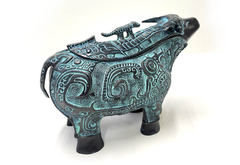 祥瀧 牛尊青銅器(仿) 故宮文物典藏 中國青銅器時代 古文明 擺飾 美術藝術品 青銅雕塑 金屬雕塑 china bronze zigzag thunder pattern Chinese ritual bronzes Chinese Bronze Age