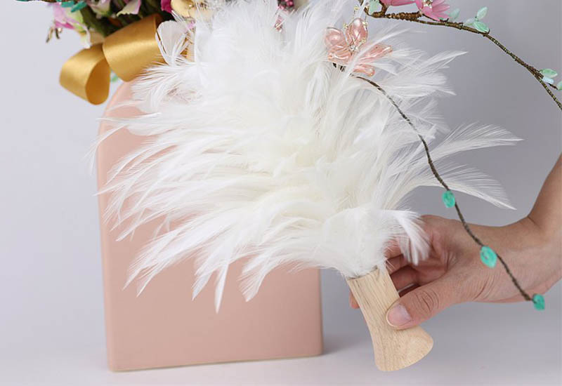 因為羽毛的根部是用天然樹脂固定,不當沖洗使得中心水分無法乾透發霉反而會減低雞毛撢子的壽命。