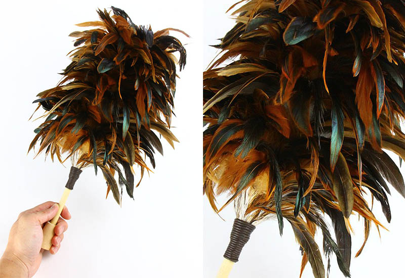 雞毛撢子是因為它具有天生的舒適觸感。尺寸上與造型上都是不斷的思考,如何握持的舒適性!柔軟的雞毛是清潔木質產品的好幫手 將空間中的碎削灰塵一撥而淨~
