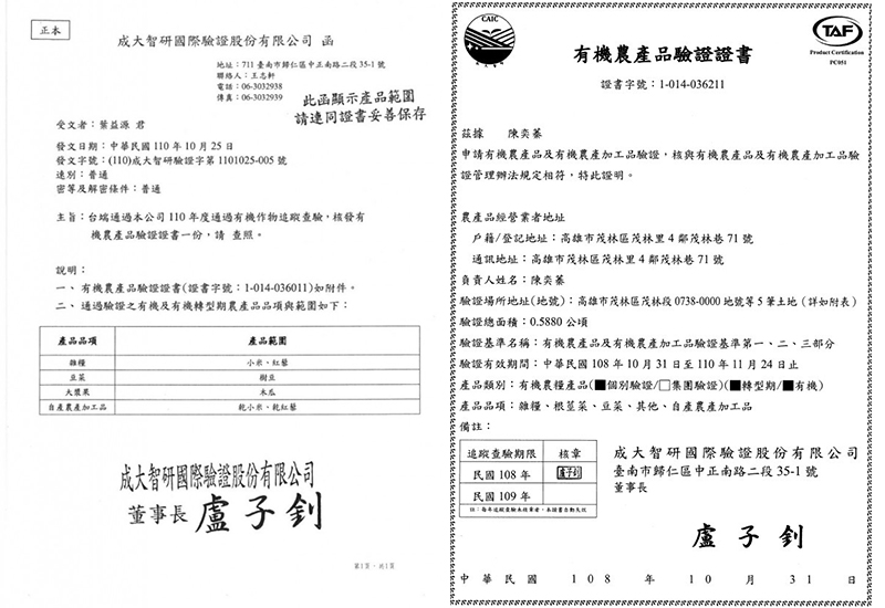 1.「有機」認証。有效期1年。