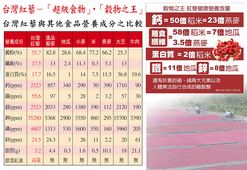 2.高纖維、高鐵、高鎂、鈣、蛋白質及甜紅素,比進口藜麥營養高出2~5倍。