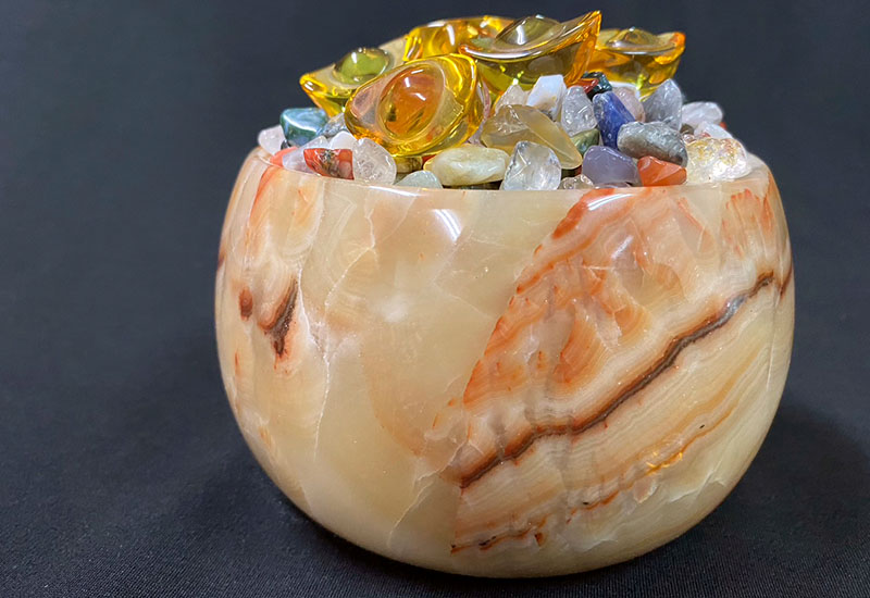 大藝石代Artfinity 紅龍玉-玉石聚寶盆(含水晶元寶) 紅龍玉聚寶盆 石工藝品 玉工藝品 rainbow stone treasure bowl stone craft design Hualien Jade Taiwan Jade craft stone art rainbow stone design creation working Taiwan culture Taiwan craft store Taiwan craft goods