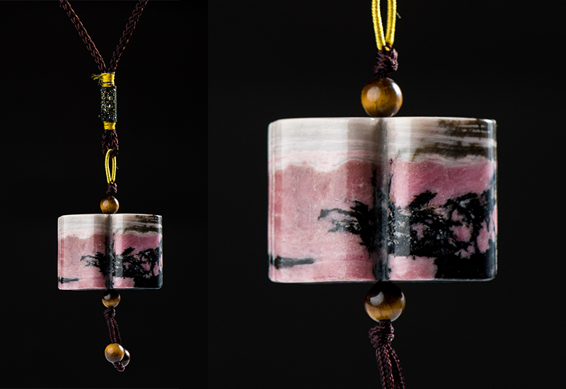 大藝石代Artfinity 玫瑰石聖賢書吊飾 書本造型 文具禮品 玫瑰石項鍊 石工藝品 玉石文具 玉工藝品 rose stone necklace Jade stone Stationery craft design Hualien Jade Taiwan Jade craft stone art rainbow stone design creation working Taiwan culture Taiwan craft store Taiwan craft goods