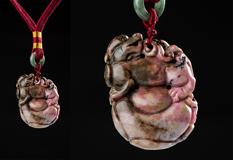 大藝石代Artfinity 玫瑰石手工雕刻吊飾-大 祥獸造型項鍊 玫瑰石項鍊 石工藝品 玉石文具 玉工藝品 auspicious beast rose stone necklace Jade stone Stationery craft design Hualien Jade Taiwan Jade craft stone art rainbow stone design creation working Taiwan culture Taiwan craft store Taiwan craft goods