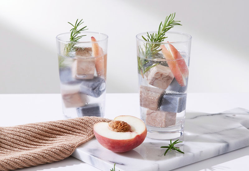 大理石冰磚、冰球適合冷-常溫飲品,也推薦使用於梅酒與威士忌等常溫酒類,不因融冰沖淡口感,拉長飲用時間。奇鈺推出的冰磚組合包含粉橘、 灰、白、墨綠、或自選四色,快來繽紛今夏涼飲!