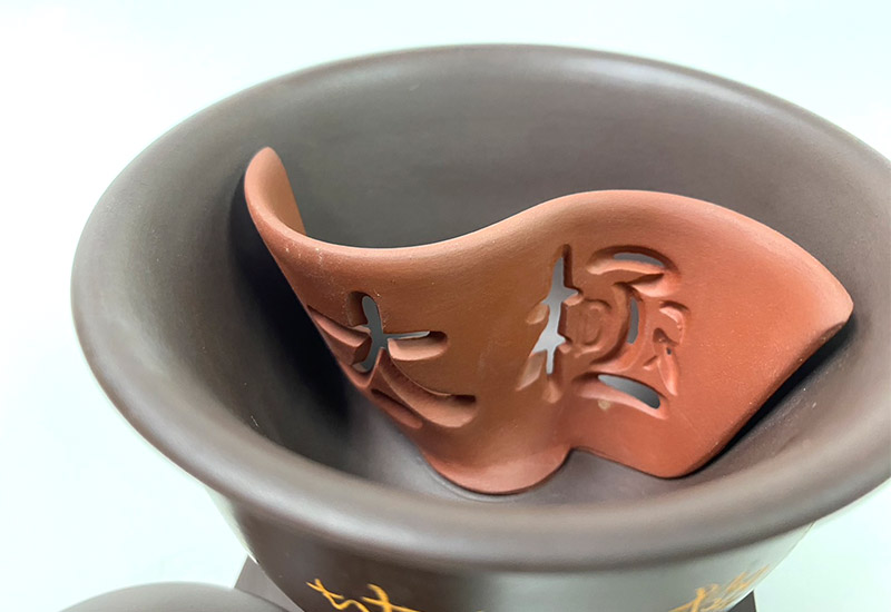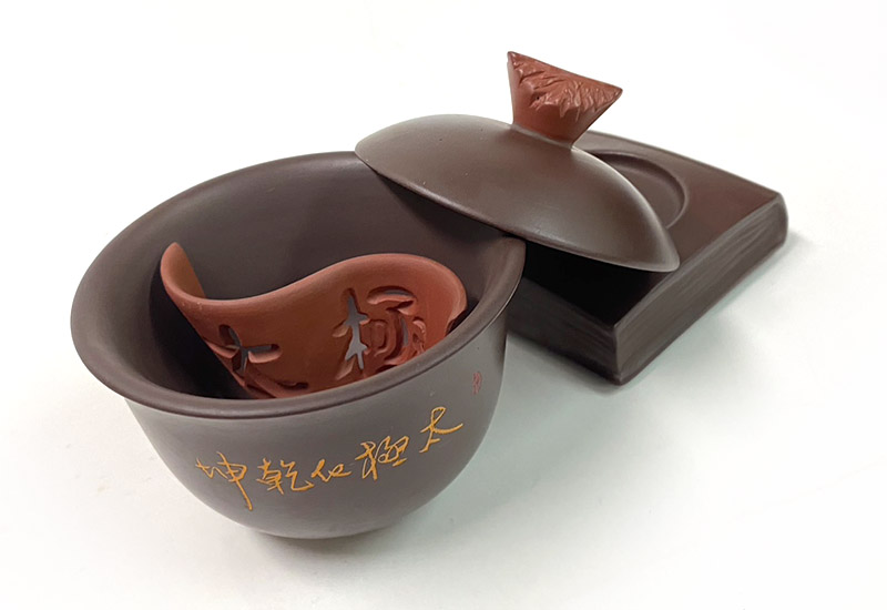 茶與水也『陰陽』的潤澤交融,此一設計是利用太極陰陽圖騰的傳達,品茶時也不會喝到茶葉渣,同時把東方意象的美學表達地淋漓盡致。