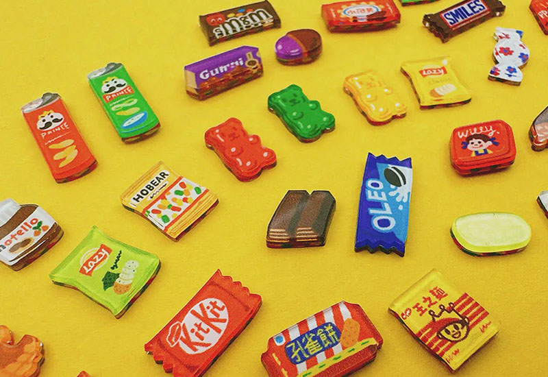 伴隨你從小到大的經典零食翻玩縮小版,每一款都藏著設計師的諧音與小幽默