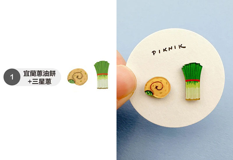 日日野餐 宜蘭文化 宜蘭蔥油餅+三星蔥耳環耳夾別針(多款可選) 宜蘭特色禮物 臺灣宜蘭在地特產 台灣宜蘭特色禮 臺灣節日特色別針 Taiwan travel earrings ear clip pin brooch 台灣特色小物飾品 創意造型耳環耳飾 台灣設計 台灣原創設計 臺灣日常風景 可愛文創 文創設計 居家 包包裝飾 小禮物 Taiwanese cultural earrings and ear clips jewelry, animal shape, Taiwan design, Taiwan original design, Taiwan daily scenery, cute cultural and creative cultural and creative design, home, bag decoration, small gift