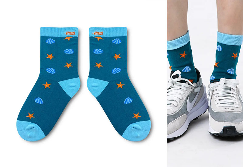 海星貝殼 厚襪款(2種尺寸) 渡假風格襪 襪子 假日風圖案襪子 Holiday pattern thick socks 加厚磅 保暖襪子 中筒襪 長襪 中長襪 綿襪 好穿 海藍色襪子 水色 綠色 藍紫色 運動襪 橘色 花花襪 彩虹襪 年輕感覺 活潑 裝可愛風 俏皮感 sock stocking