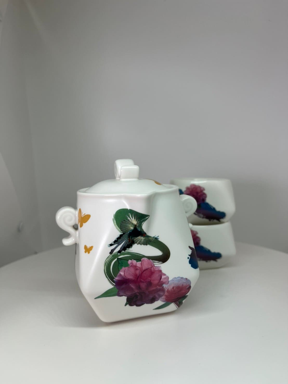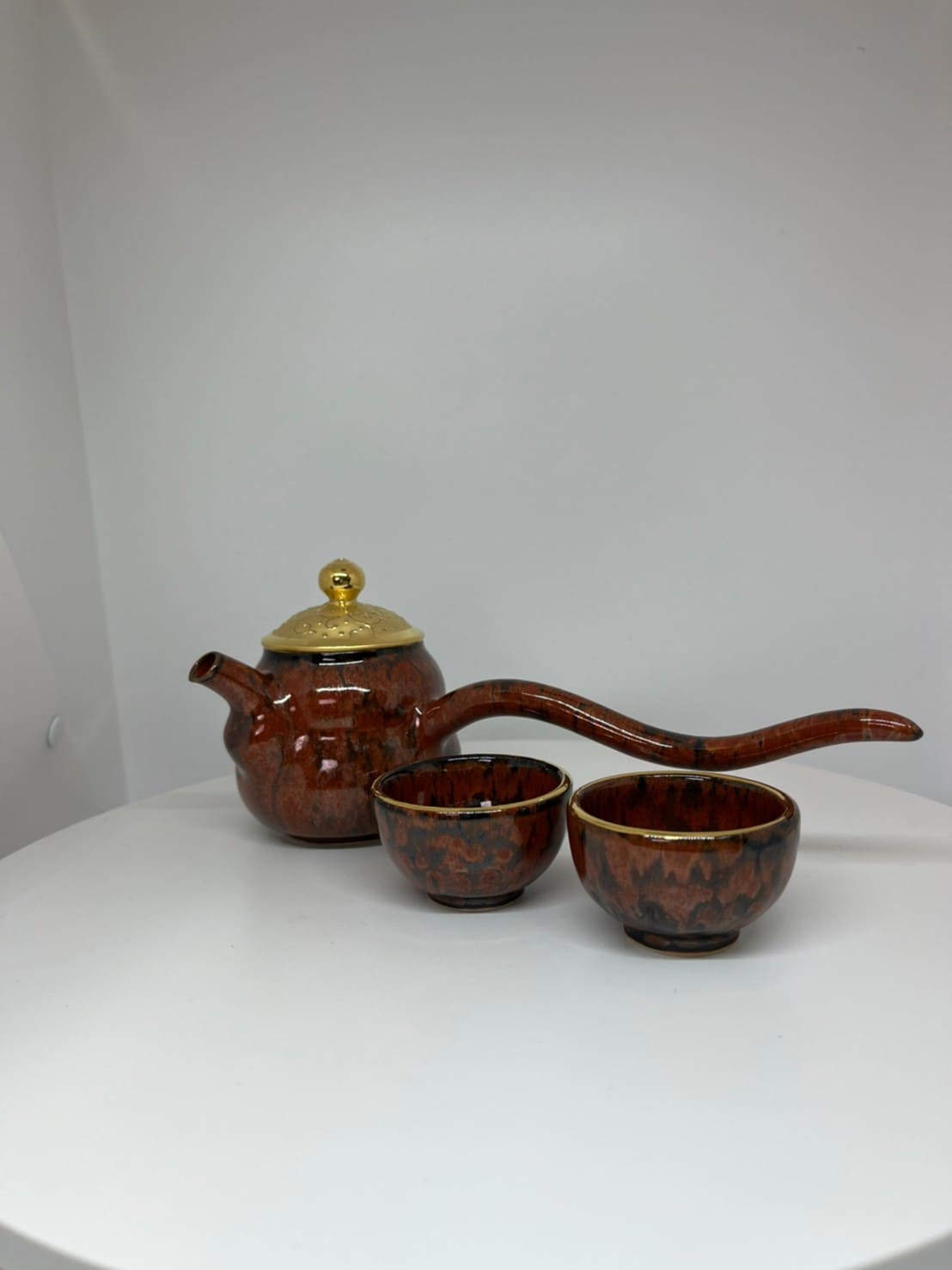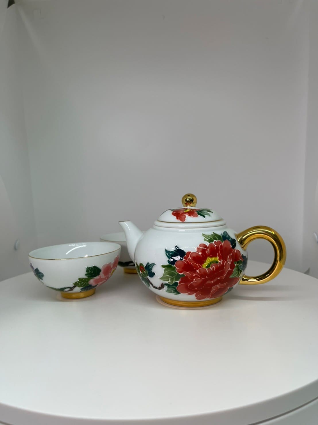 法華彩 富貴滿園鎏金茶壺組(1壺2杯)