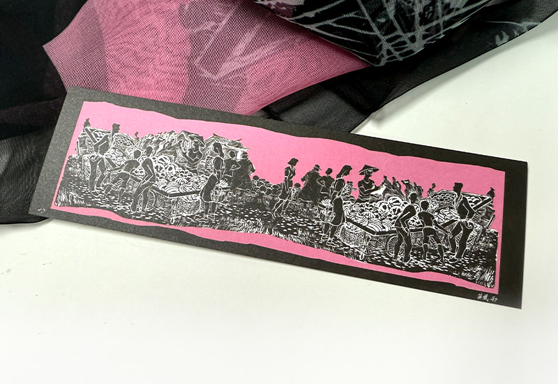 呦呦 楊英風 青果市場絲巾(粉) 台灣美術藝術 雕塑插畫
