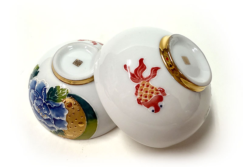 對杯以牡丹象徵富貴華麗,搭配金魚寓意年年有餘,吉祥富足,傳遞圓滿與喜慶