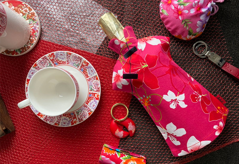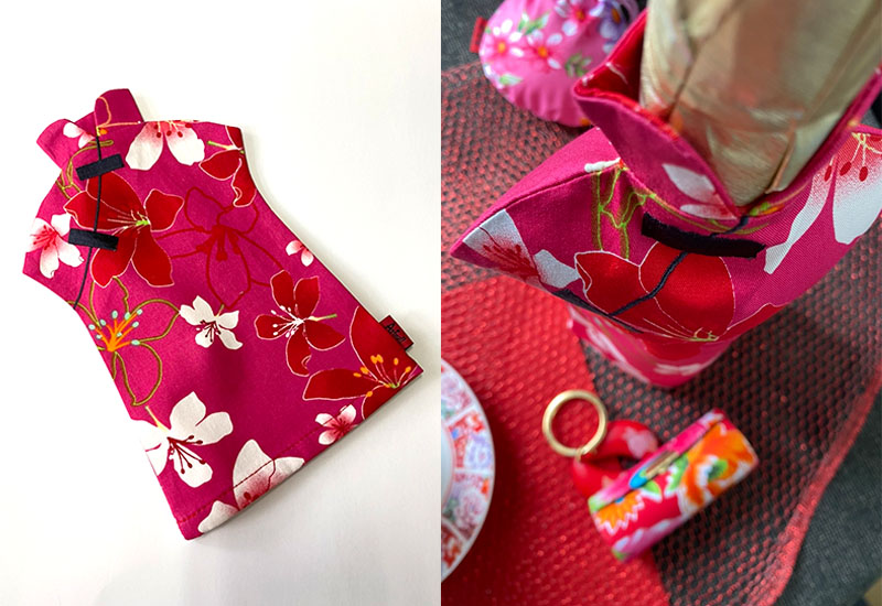 台灣花布 花布酒瓶衣-大紅色 酒衫酒衣酒套 送禮包裝 bottle clothes 客家花布 客家文化 Hakka culture