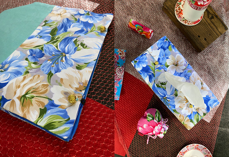 台灣花布 面紙盒套-水藍 台灣花布面紙盒 布質面紙盒 台灣布染 Tissue Box Jacket