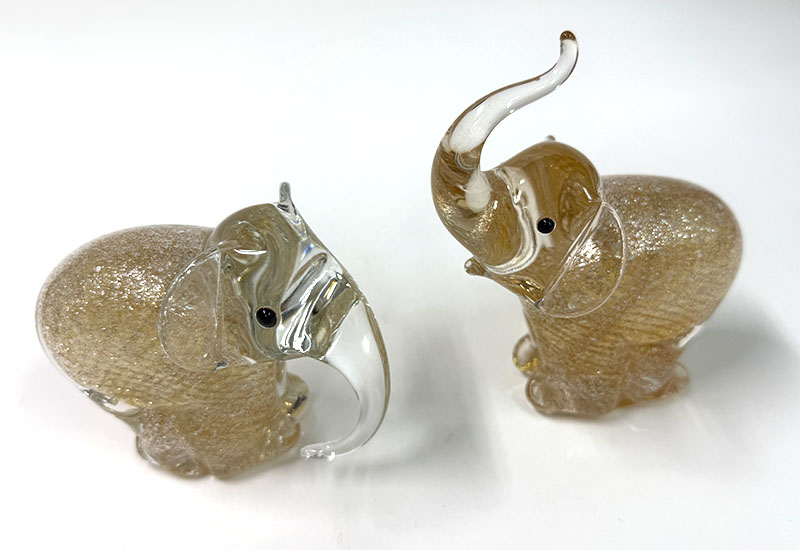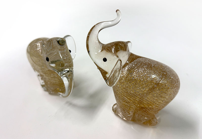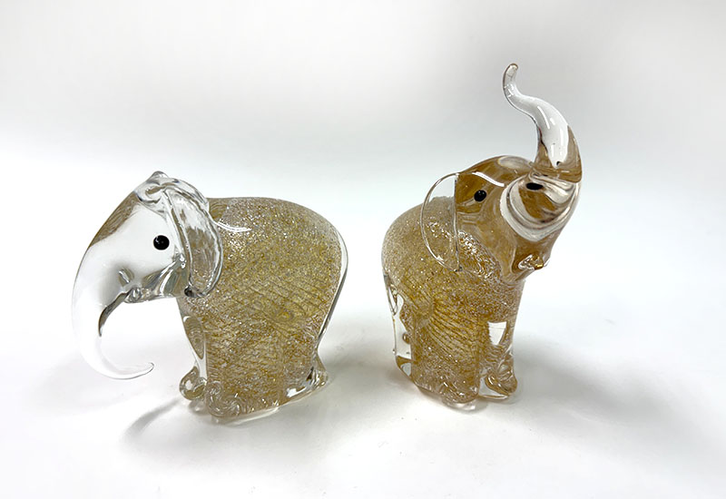玲瓏窯玻璃 吉象成雙-茶金 大象 玻璃擺飾
